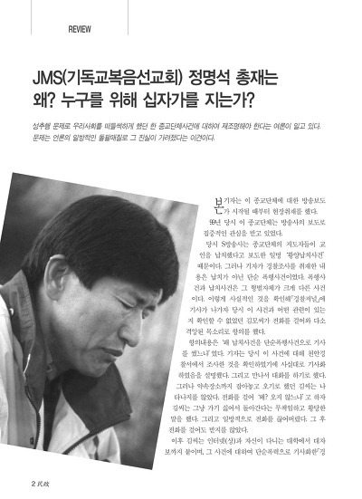 정명석 총재의 부도덕을 고발한다는 제보자의 주장은 언론인의 정의감을 자극하기에 충분합니다. 한 단체의 지도자와 그를 상대로 피해를 입었다고 주장하는 소수의 사람들. 이 둘을 비교하면 당연히 사회 정의를 꿈꾸는 젊은 언론인의 가슴은 소수의 약자가 뿌리는 눈물에 출렁거렸을 것입니다. 거기에 정명석 총재에 대해 악의를 품고 있는 그 소수의 조직적이고도 계획적인 움직임이 더해져 호사가들의 입맛을 다시게 할 만한 특종으로 키워졌습니다.